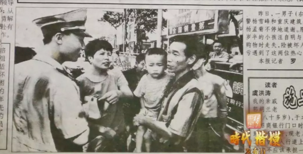 有兩個(gè)陌生男子,聲稱(chēng)是他的爸爸,試圖領(lǐng)走他。幸虧遇到了剛參加工作不久的21歲民警楊雪峰。楊雪峰抱著他找遍了整個(gè)百貨公司,終于找到了滿頭大汗焦急萬(wàn)分的爸爸。