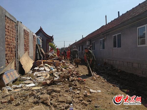 “前兩天泄洪時(shí),洪水漫過路面進(jìn)入了口子村,最深處積水有兩米多深?!鄙峡阪?zhèn)黨委副書記張文杰告訴記者,口子村是壽光當(dāng)?shù)厥転?zāi)最嚴(yán)重的村莊之一,為了防止即將到來的暴雨對口子村產(chǎn)生二次災(zāi)害,目前來自臨沂、泰安兩地的900名消防官兵正在和500多名當(dāng)?shù)馗刹咳罕?、志愿者一起抓緊時(shí)間對村里的垃圾和淤泥進(jìn)行清理。抽排積水。