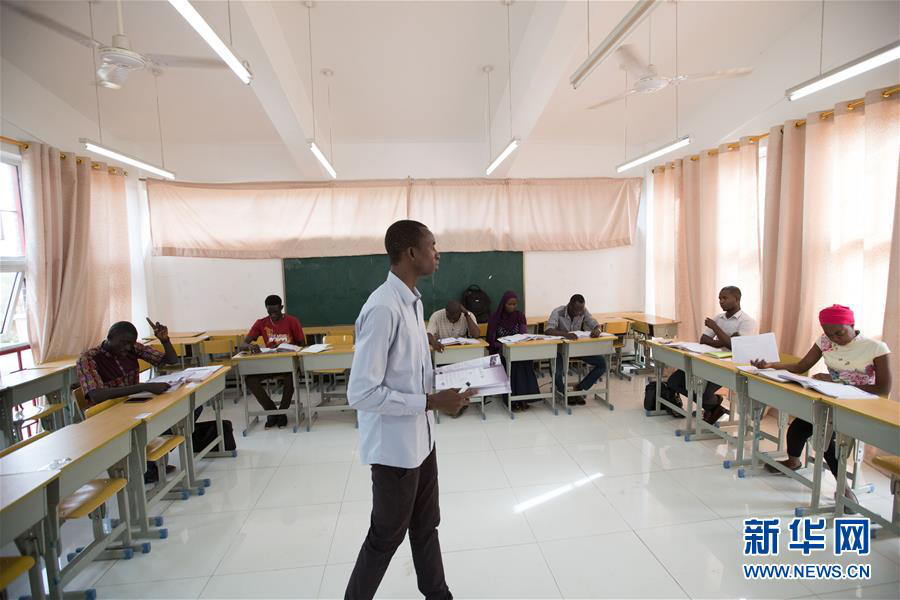 2018年7月18日,庫馬克·巴胡姆(中文名字巴虹)(前)在塞內(nèi)加爾達喀爾大學(xué)孔子學(xué)院教中文課。目前,達喀爾大學(xué)孔子學(xué)院已有3名在崗本土中文教師,他們以生動、易懂的方式在塞內(nèi)加爾傳播中國文化,講述中國故事。 新華社記者呂帥攝
