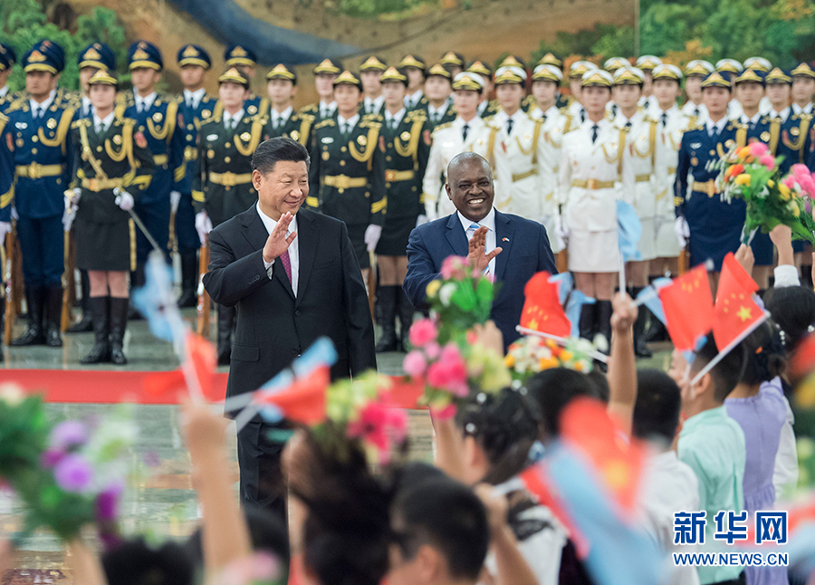 8月31日,國(guó)家主席習(xí)近平在北京人民大會(huì)堂同博茨瓦納總統(tǒng)馬西西舉行會(huì)談。這是會(huì)談前,習(xí)近平在人民大會(huì)堂北大廳為馬西西舉行歡迎儀式。 新華社記者 翟健嵐 攝