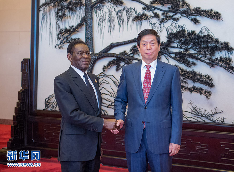 9月2日,全國人大常委會委員長栗戰(zhàn)書在北京人民大會堂會見赤道幾內(nèi)亞總統(tǒng)奧比昂。? 新華社記者 翟健嵐 攝