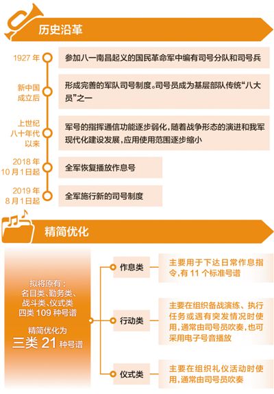 為什么恢復(fù)司號制度?我軍司號制度經(jīng)過了怎樣的歷史沿革?恢復(fù)工作體現(xiàn)了哪些新變化?本報記者采訪了新司號制度課題組成員、軍事科學(xué)院軍事法制研究院助理研究員陳零。