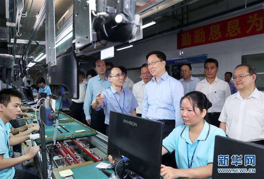 這是9月13日,韓正考察冠捷顯示科技(北海)有限公司。 新華社記者 劉衛(wèi)兵 攝
