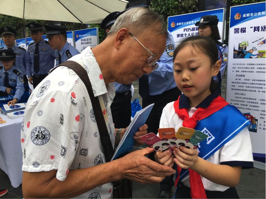 “如果收到信息,說(shuō)您的家人受傷需要匯款,肯定是詐騙電話??ㄆ竺嬗兴膫€(gè)詐騙的典型案例,爺爺您可以了解一下?!鄙俪切W(xué)四年級(jí)的李彥孜一邊拿著精巧可愛(ài)的網(wǎng)絡(luò)安全知識(shí)熊貓書(shū)簽,一邊用稚嫩的聲音做介紹。李彥孜是宣傳網(wǎng)絡(luò)安全的小志愿者,她告訴傳播君,這些網(wǎng)絡(luò)安全知識(shí)都是用課余時(shí)間去了解的,“多一個(gè)人知道,就少一個(gè)人受害”。