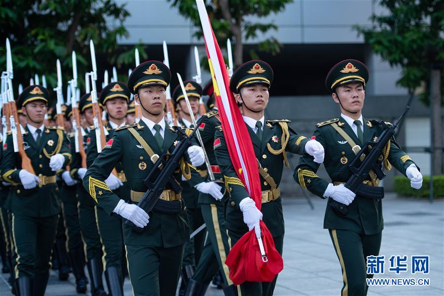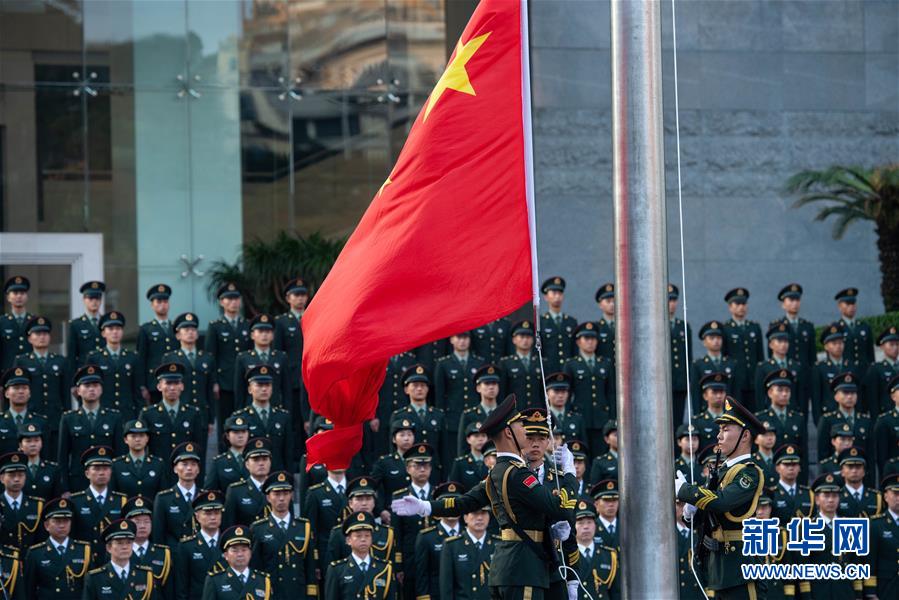 10月1日,中國人民解放軍駐澳門部隊在新口岸營區(qū)舉行升國旗儀式,慶祝中華人民共和國成立69周年。 新華社記者 張金加 攝
