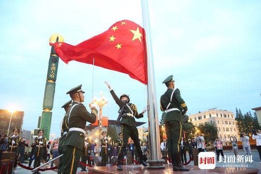 6點(diǎn)50分左右,伴隨著響亮的口號(hào)整齊的腳步聲,楊婷也墊起了腳尖——在不遠(yuǎn)處邁著步伐挺近的蓉城國(guó)旗護(hù)衛(wèi)隊(duì)里尋找著男友的身影,“媽媽你快看!第一排拿國(guó)旗左邊那個(gè)就是他!”看到男友李燃后,楊婷忍不住高興地叫了起來,一邊揮舞著手上的國(guó)旗,一邊用手機(jī)一直拍攝。7點(diǎn),五星紅旗升上了桿頂,楊婷的眼睛也一直跟隨著男友歸隊(duì),一刻也不曾離開。