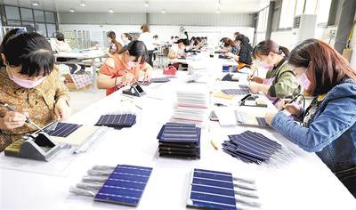 近日,魏縣德政鎮(zhèn)前小寨村扶貧微工廠工人正在檢驗(yàn)太陽能板。魏縣立足留守婦女等半勞力多的實(shí)際,發(fā)展“扶貧微工廠”252家,帶動建檔立卡人口就業(yè)6000余人。 記者 杜柏樺攝