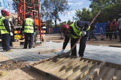 昨日(10日),故宮北院區(qū)施工現(xiàn)場,工程人員勘探取巖芯。新京報記者 浦峰 攝