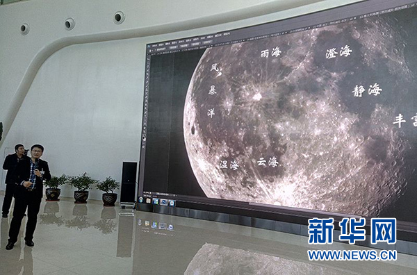 ↑↑相關(guān)負(fù)責(zé)人展示“吉林一號”拍回的月球表面圖像。