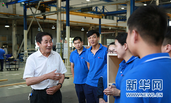 吳振祥(左)走進(jìn)企業(yè)車間班組,與職工面對(duì)面交談(資料照片)。 新華社發(fā)