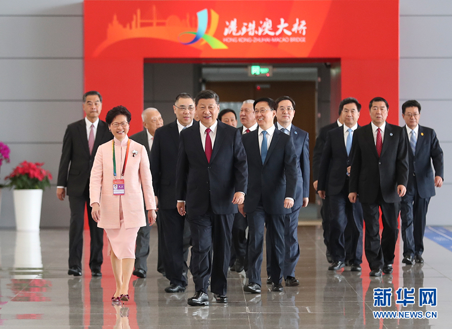在觀看了反映大橋建設(shè)情況視頻后,中共中央政治局委員、廣東省委書記李希,香港特別行政區(qū)行政長官林鄭月娥,澳門特別行政區(qū)行政長官崔世安和韓正先后致辭。