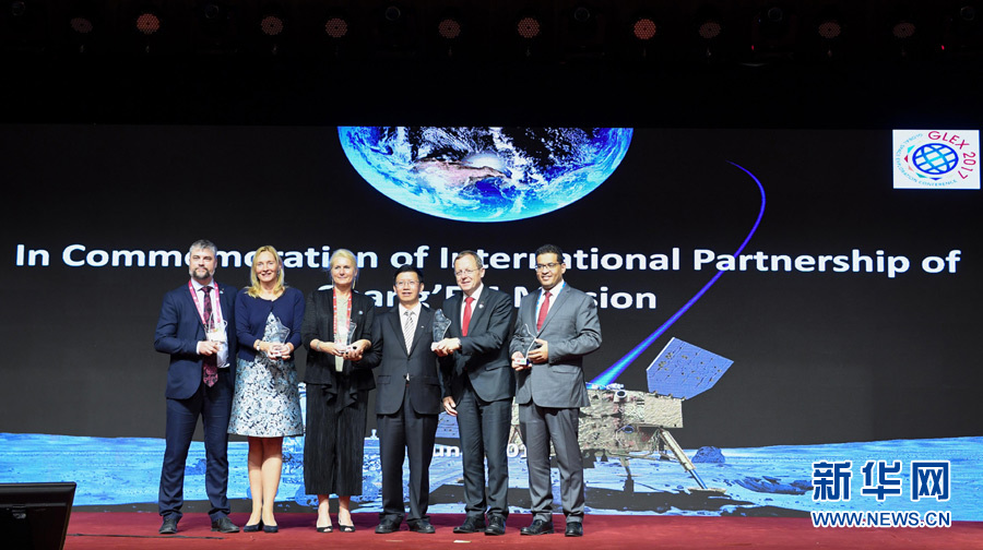 中國國家航天局嫦娥四號國際合作伙伴關(guān)系建立啟動儀式在2017年全球航天探索大會上舉行。新華社記者陳曄華攝