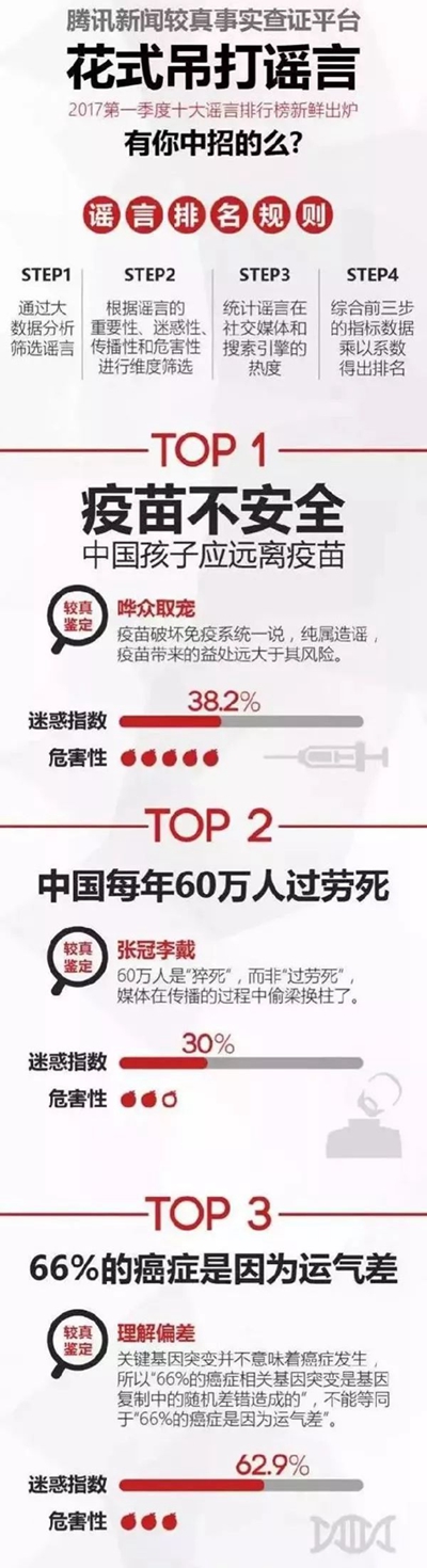 去年,某媒體發(fā)布了醫(yī)療健康類(lèi)十大謠言榜單,提醒公眾對(duì)醫(yī)療健康類(lèi)網(wǎng)文提高警惕性。