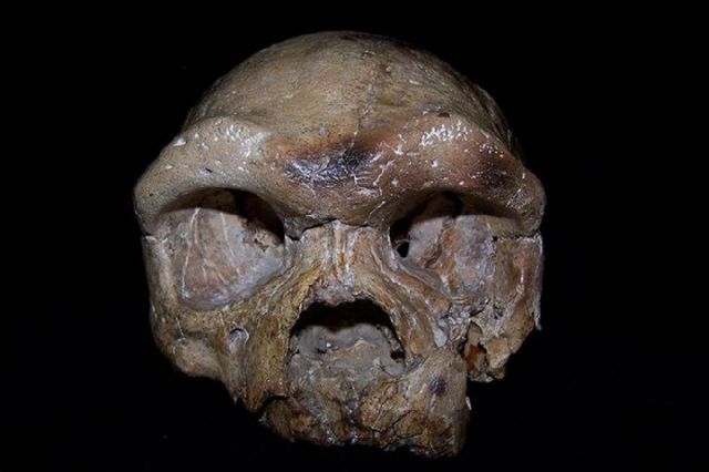 陜西出土的大荔人的顱骨。圖片中國(guó)科學(xué)院古脊椎動(dòng)物與古人類(lèi)所提供