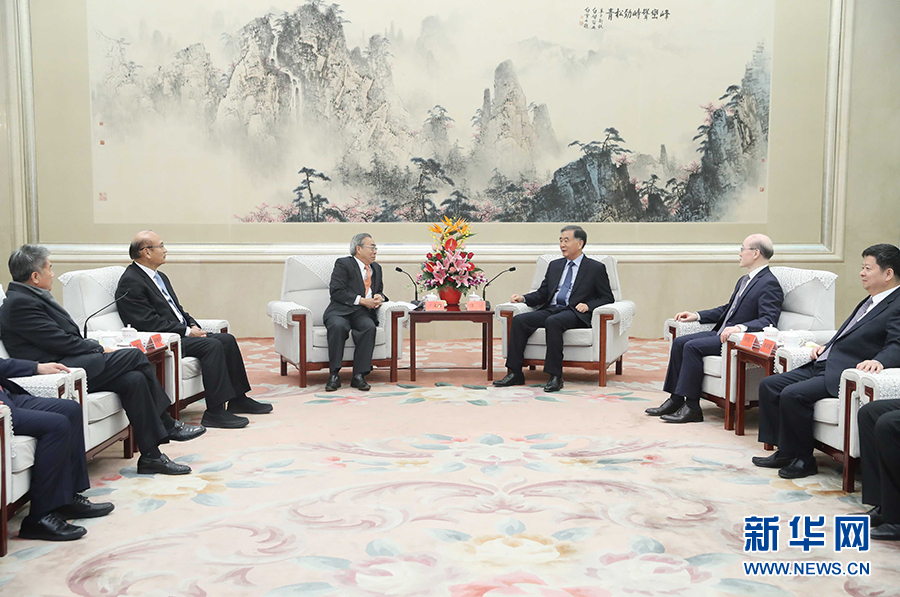 新華社北京11月6日電 中共中央政治局常委、全國政協(xié)主席汪洋6日在京會見了王文淵率領(lǐng)的臺灣工業(yè)總會理監(jiān)事參訪團(tuán)一行。