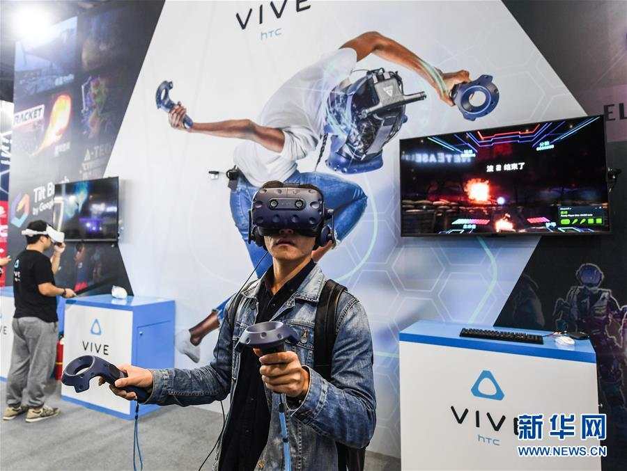 11月6日,參觀者在博覽會現(xiàn)場體驗虛擬現(xiàn)實技術(shù)。