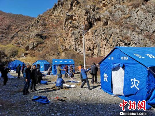 救援人員正在搭建帳篷?!⒅铱?攝