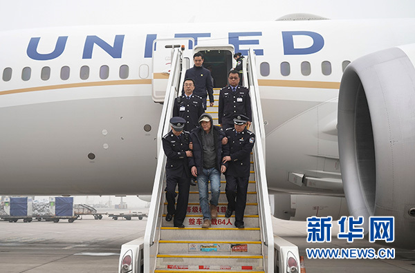 新華社北京11月14日電 2018年11月14日,在中央反腐敗協(xié)調(diào)小組國(guó)際追逃追贓工作辦公室統(tǒng)籌協(xié)調(diào)下,經(jīng)中美兩國(guó)執(zhí)法部門通力協(xié)作,外逃美國(guó)的職務(wù)侵占犯罪嫌疑人鄭泉官被強(qiáng)制遣返回國(guó)。