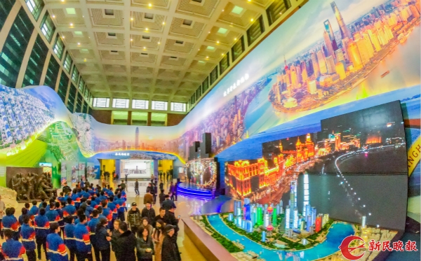 圖說:上海展區(qū)的視頻和沙盤展示著建設(shè)成就。新民晚報(bào)記者 孫中欽 攝