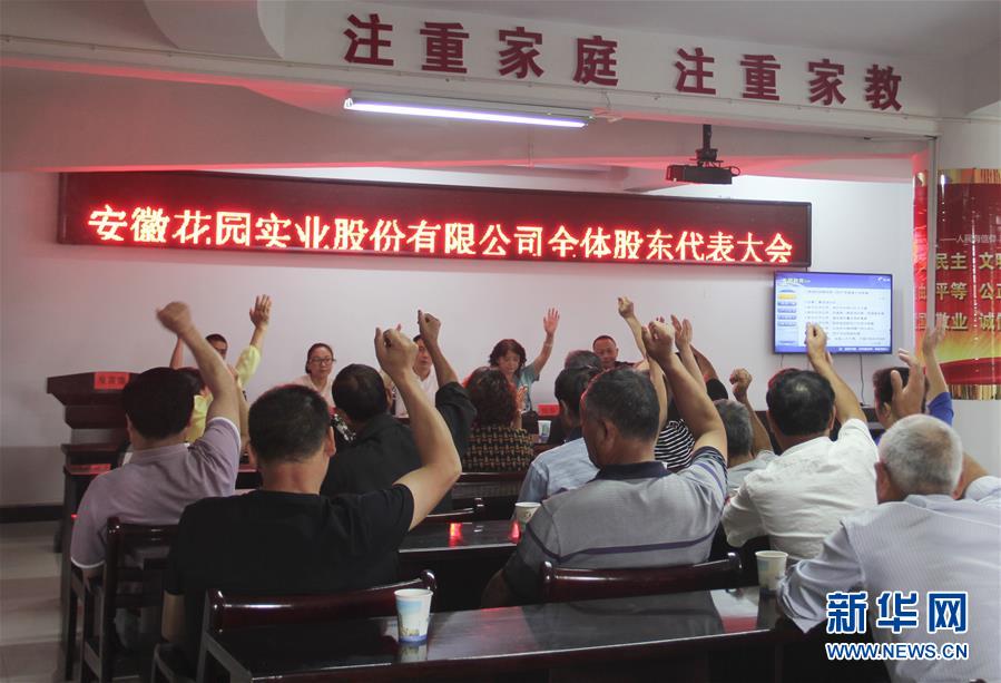 在安徽宣城花園村,來(lái)自安徽花園實(shí)業(yè)股份有限公司的股東全票通過(guò)股權(quán)激勵(lì)方案(2017年10月27日攝)。 新華社發(fā)