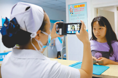 四川省華鎣市引進被稱為醫(yī)?!半娮泳臁钡闹悄鼙O(jiān)管系統(tǒng)。通過該系統(tǒng),醫(yī)保經辦機構可在線實施遠程查房、調閱病歷、醫(yī)保號查詢等操作,變原來的事后審查為事中監(jiān)管和審查,有效杜絕騙保行為。圖為華鎣市人民醫(yī)院一名護士利用醫(yī)保智能監(jiān)管系統(tǒng)手持移動端對患者進行“臉譜”采集。周松林攝