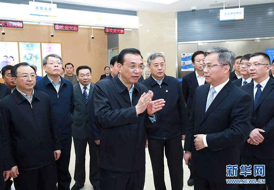 11月29日至30日,中共中央政治局常委、國務院總理李克強在江蘇南通、南京考察。這是11月29日,李克強在江蘇銀行南通崇川支行考察金融服務小微企業(yè)情況。 新華社記者 龐興雷 攝