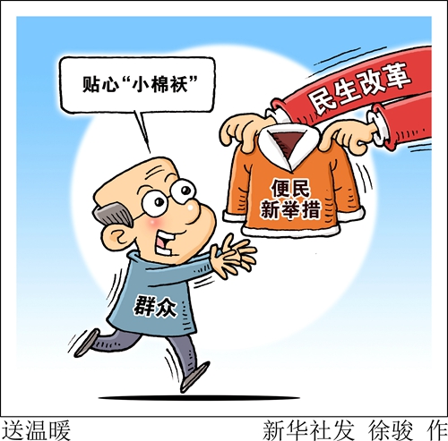 漫畫(huà):送溫暖 新華社發(fā) 徐駿 作