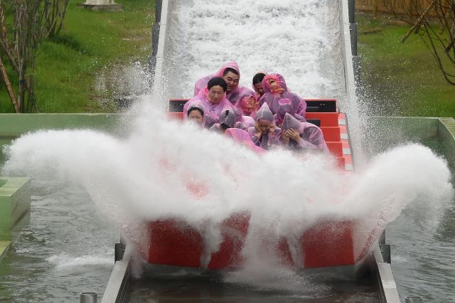 游客在浙江寧波中華復(fù)興文化園非物質(zhì)文化博覽園體驗(yàn)游樂項(xiàng)目 ( 黃宗治/攝 )