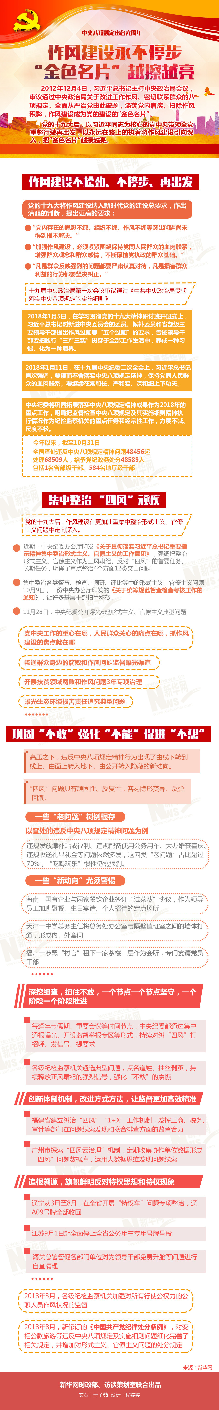 黨的十九大后,以習(xí)近平同志為核心的黨中央帶領(lǐng)全黨重整行裝再出發(fā),不改初衷、踐行承諾,以永遠(yuǎn)在路上的執(zhí)著將作風(fēng)建設(shè)引向深入,把“金色名片”越擦越亮。