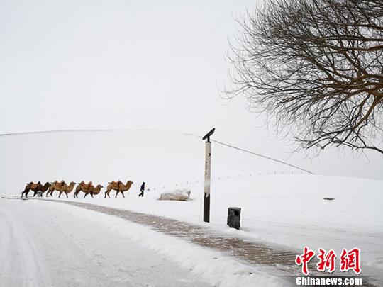 12月以來,素有“中國旱極”之稱的甘肅敦煌連迎兩場降雪,金黃色的鳴沙山被白雪覆蓋如“雪山”,月牙泉銀裝素裹、分外妖嬈。連續(xù)降雪天氣還致酒泉市、嘉峪關(guān)兩市氣溫不斷走低,降雪在城區(qū)尚未來得及被清理,便落地成冰。當(dāng)?shù)匾晃怀鲎廛囁緳C(jī)笑言“行車如同跑在溜冰場上,稍踩油門能跑好遠(yuǎn)”。
