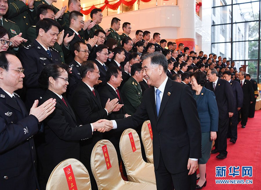 12月9日,中共中央政治局常委、全國政協(xié)主席、中央代表團(tuán)團(tuán)長汪洋率代表團(tuán)部分成員分別赴廣西軍區(qū)、武警廣西總隊(duì)慰問,并會見自治區(qū)政法系統(tǒng)代表。這是汪洋會見自治區(qū)政法系統(tǒng)代表。 新華社記者 申宏 攝