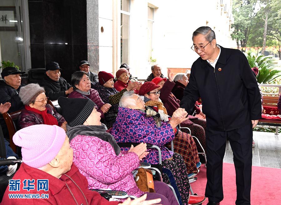 12月12日,全國(guó)政協(xié)副主席、中央代表團(tuán)副團(tuán)長(zhǎng)馬飚率中央代表團(tuán)五分團(tuán),帶著以習(xí)近平同志為核心的黨中央的親切關(guān)懷和全國(guó)各族人民的美好祝福,在賀州、桂林看望慰問各族各界干部群眾。這是馬飚在桂林市夕陽紅養(yǎng)老中心看望老人。 新華社記者 周華 攝