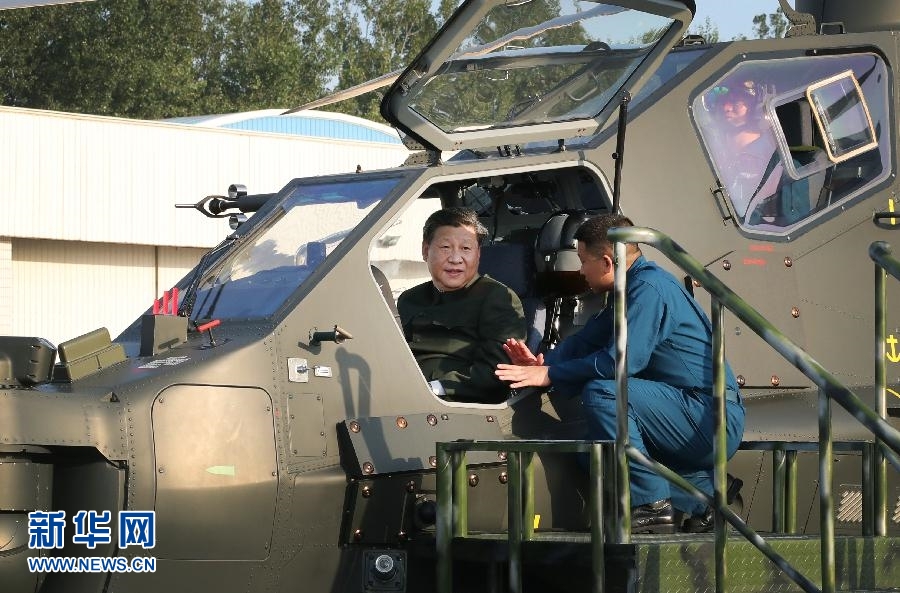 9月27日,習(xí)近平在視察79集團軍時登上直-10武裝直升機,親自操控機載武器及觀瞄系統(tǒng),了解有關(guān)裝備情況。?新華社記者李剛攝