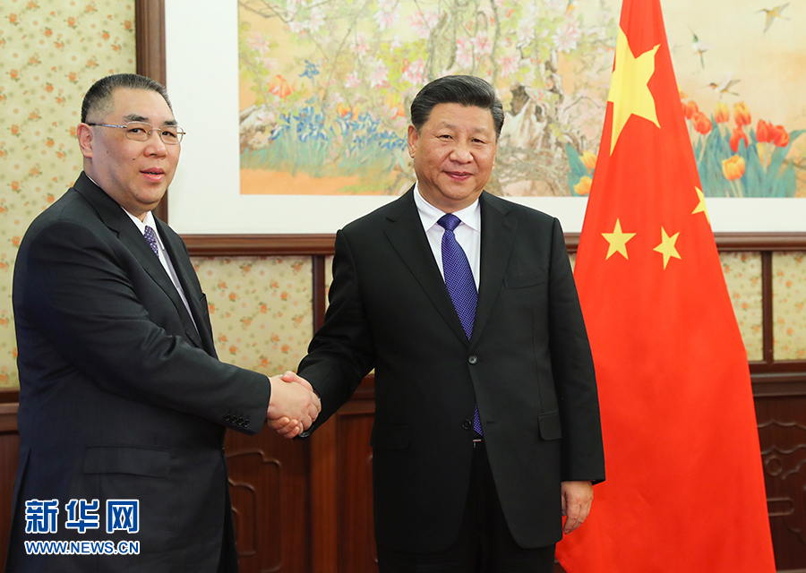 12月17日,國家主席習(xí)近平在中南海會見來京述職的澳門特別行政區(qū)行政長官崔世安。 新華社記者 謝環(huán)馳 攝