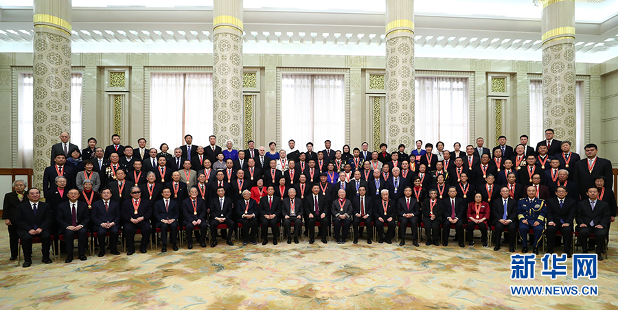 慶祝大會結(jié)束后,習(xí)近平等會見了受表彰人員及親屬代表,并同大家合影留念。