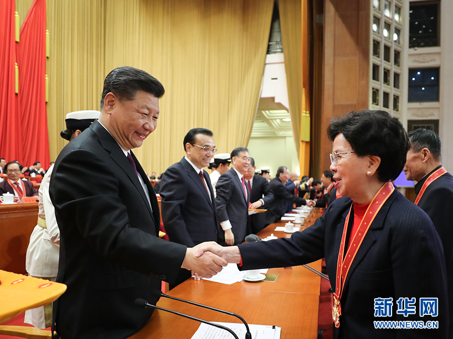 12月18日,慶祝改革開放40周年大會在北京人民大會堂隆重舉行。中共中央總書記、國家主席、中央軍委主席習(xí)近平在大會上發(fā)表重要講話。這是習(xí)近平等為獲得改革先鋒稱號人員代表頒獎。 新華社記者 鞠鵬 攝