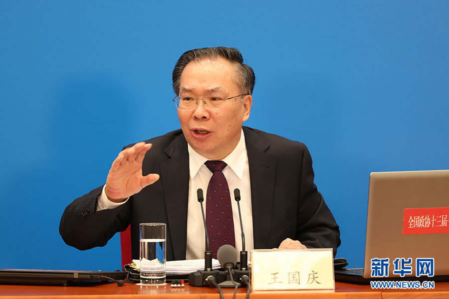 全國(guó)政協(xié)十三屆一次會(huì)議新聞發(fā)布會(huì)3月2日16:30在人民大會(huì)堂一層新聞發(fā)布廳召開,大會(huì)新聞發(fā)言人王國(guó)慶向中外媒體介紹本次大會(huì)有關(guān)情況并回答記者提問。圖為大會(huì)新聞發(fā)言人王國(guó)慶回答記者提問。?新華網(wǎng)/中國(guó)政府網(wǎng) 陳杰 攝