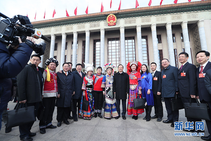 3月5日,第十三屆全國人民代表大會第一次會議在北京人民大會堂開幕。這是代表們在人民大會堂前合影。 新華網(wǎng)/中國政府網(wǎng) 翟子赫攝