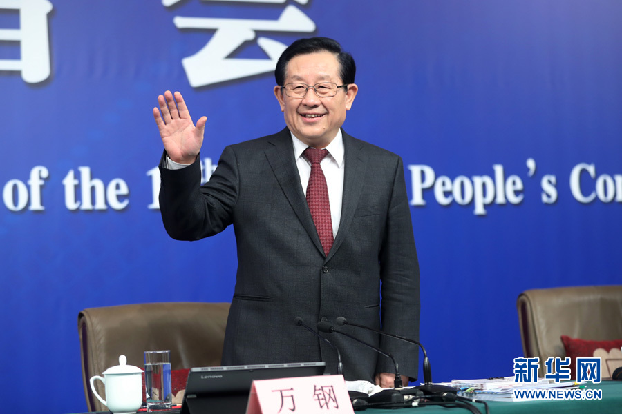 十三屆全國人大一次會(huì)議新聞中心于10日上午10時(shí)45分在梅地亞中心多功能廳舉行記者會(huì),邀請科技部部長萬鋼、政策法規(guī)與監(jiān)督司司長賀德方、創(chuàng)新發(fā)展司司長許倞就“加快建設(shè)創(chuàng)新型國家”相關(guān)問題回答中外記者提問。圖為萬鋼向記者示意。新華網(wǎng)/中國政府網(wǎng) 翟子赫 攝