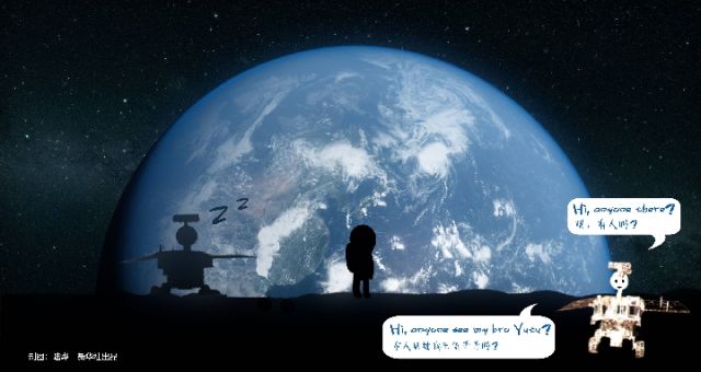 “玉兔二號(hào)”駛上月球背面,問(wèn)候“玉兔”。新華社記者 陸燁 制圖