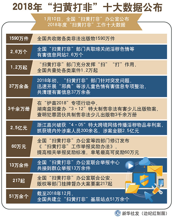 圖表:2018年“掃黃打非”十大數(shù)據(jù)公布 新華社發(fā) 邊紀(jì)紅 制圖