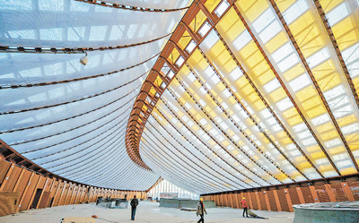 “館頂?shù)牧鹆呤欠抡娴?,?shí)際上是鋁合金型材。既可以模擬傳統(tǒng)建筑的質(zhì)地,也能節(jié)約成本,這是現(xiàn)代科技元素在北京世園會(huì)的獨(dú)特運(yùn)用?!崩桁n對(duì)記者說。中國館的底層展廳還采用了覆土被動(dòng)房技術(shù),利用地道風(fēng),降低館內(nèi)空調(diào)使用能耗。
