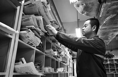 每天一上班,陳龍先將各類報刊和信件進行整理 攝影/本報記者 柴程