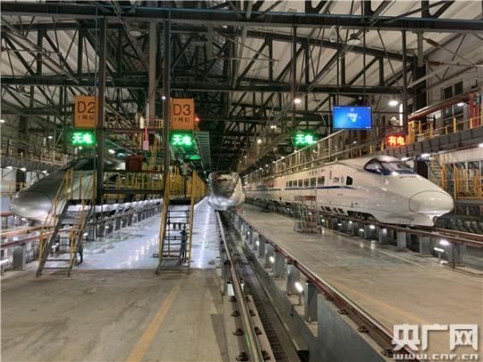 高鐵白天在線路上飛馳,夜晚才會(huì)進(jìn)入動(dòng)車(chē)所。因此,每天下午5點(diǎn)半到次日凌晨的這段時(shí)間成了郭志華和同事們最忙碌的時(shí)刻。
