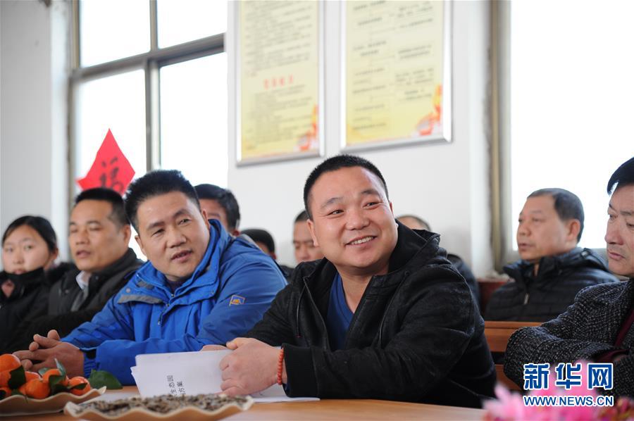 在臨沭縣大官莊村村民茶話會(huì)現(xiàn)場,歸鄉(xiāng)人員和村干部共同探討未來致富發(fā)展思路(2月7日攝)。新華社記者 袁軍寶 攝
