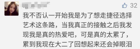 我們驚嘆于舞臺上舞者的舞姿婀娜,我們嘆服指尖的音符跳動,我們?yōu)樽约合矚g的歌手吶喊打call,為一部優(yōu)秀的電影作品鼓掌致敬……與此同時,很多人不自主地忽略了一件事:“藝考生為了專業(yè)課付出了什么。”