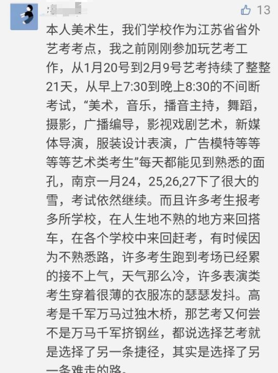 又到了一年中藝術類考生最忙碌的時候。這兩天,中傳、中戲、上戲等高校的??技娂娎_大幕。
