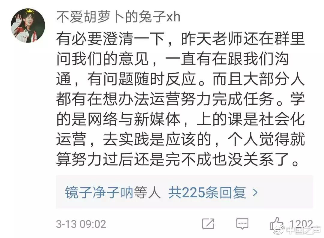 也有學(xué)生認(rèn)為,比起課本上知識(shí),在校學(xué)習(xí)也應(yīng)注重實(shí)踐,有時(shí)候一些課程或課間作業(yè)看似無(wú)厘頭,背后也有老師們的良苦用心。不少走上工作崗位的同學(xué),在一段時(shí)間之后才體會(huì)到當(dāng)年自己曾吐槽的那門(mén)課程所教會(huì)自己的東西:“大部分同學(xué)有在想辦法完成這樣一個(gè)運(yùn)營(yíng)任務(wù),學(xué)的是網(wǎng)絡(luò)與新媒體,我覺(jué)得去實(shí)踐是應(yīng)該的,自己覺(jué)得就算努力過(guò)后完不完成任務(wù)也沒(méi)所謂,你去實(shí)踐了很重要?!?/p>