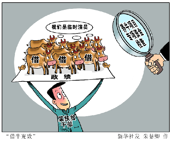 為應(yīng)對國務(wù)院扶貧辦養(yǎng)牛項目專項資金檢查,居然想出臨時借用百余頭牛放入牛圈,以營造養(yǎng)牛項目“紅火”的主意。吉林省紀(jì)委近日通報一起借牛假冒政績的典型問題,相關(guān)責(zé)任人受到嚴肅查處問責(zé)。“借牛充數(shù)”事件敲響警鐘:脫貧攻堅越到最后時刻越要響鼓重錘,決不能搞急功近利、虛假政績的東西。