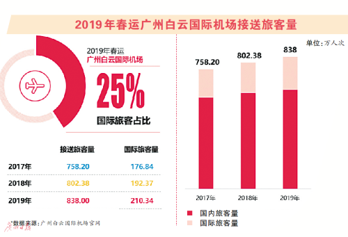 數(shù)據(jù)顯示,2018年下半年,白云國(guó)際機(jī)場(chǎng)旅客吞吐量增速分別為4.2%、6.9%、3%、3%、4.7%。臨近春節(jié)的1月份,白云國(guó)際機(jī)場(chǎng)旅客吞吐量同比增速達(dá)到8.7%,其中,進(jìn)港的旅客人次同比增速為6.7%,出港的旅客人次同比增速為10.7%。(文/記者徐靜 廣州日?qǐng)?bào)數(shù)據(jù)和數(shù)字化研究院廖祎然、湯潔琳、蔡振宇對(duì)此文亦有重要貢獻(xiàn))